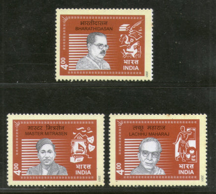 India 2001 Personality Series Poetry & Performing Art: Bharathidasan, Lachhu Maharaj, Master Mitrasen 3v Phila 1856-58 MNH