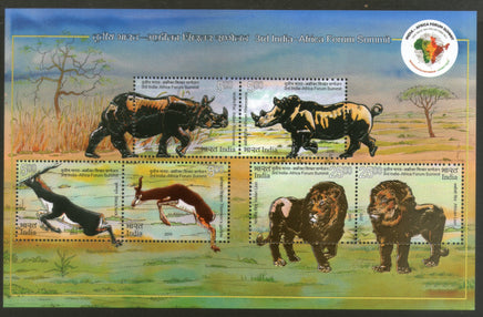 India 2015 Africa Forum Lion Rhino Gazelle Wildlife Innovative Foil M/s MNH