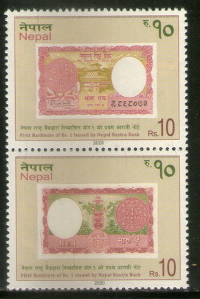 Nepal 2000 First Banknote of Re.1 Issue by Nepal Rastra Bank Se-tenant 2v MNH # 89