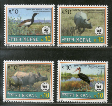 Nepal 2000 WWF Florican Horn Rhinoceros Bird Wildlife Animals Sc 682-5 MNH # 12826