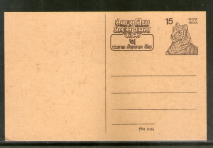 India 1977 15p Tiger Panjab National Bank Advt. Postal Stationery Post Card # PCA38