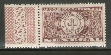 Timbre-taxe de 30 cents du Sénégal 1935, Sc J26, avec languette, neuf sans charnière, n° 10