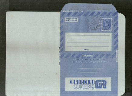 Carte postale Ashokan de 20 pence, Inde 1977, avec publicité textile Graviera Suitings, ILC, état neuf n° 55FD