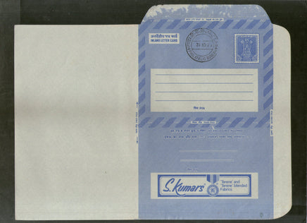 Carte postale Ashokan de 20 pence, Inde, 1977, avec publicité textile pour les tissus S. Kumars, ILC, état neuf n° 77FD