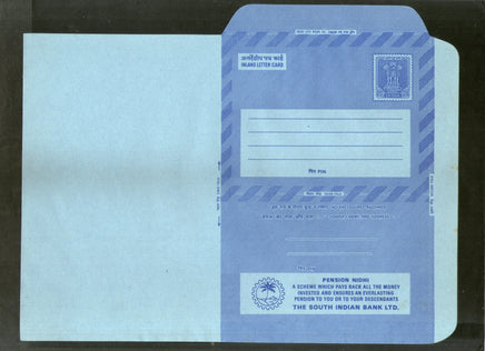Carte postale Ashokan de 20 pence, Inde 1977, avec publicité pour la pension Nidhi de la South Indian Bank, numéro de pièce ILC : 87