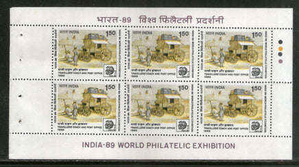 Inde 1989 INDIA-89 Traveller Coach Exposition philatélique mondiale Phila-1186 Feuillet de 6 timbres MNH # 13573