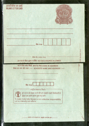 Carte postale intérieure Peacock de 75 pence, Inde, 1995, avec publicité pour l'éducation entièrement alphabétisée, ILC MINT # 365FL
