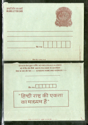 Carte postale intérieure Peacock de 75 pence, Inde, 1995, avec publicité en hindi, ILC, état neuf n° 370FL