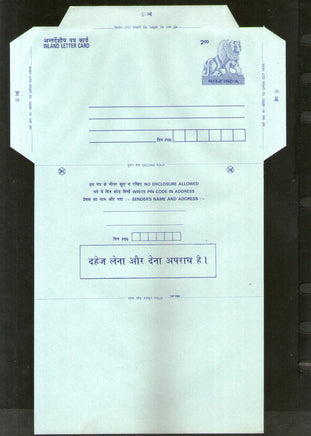 Carte postale intérieure de l'Inde 1999 2Rs Lion avec publicité pour la dot, ILC MINT # 540
