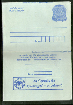 Carte postale intérieure Peacock de 200 pence, Inde 2000, avec publicité pour le recensement, ILC MINT # 601FL