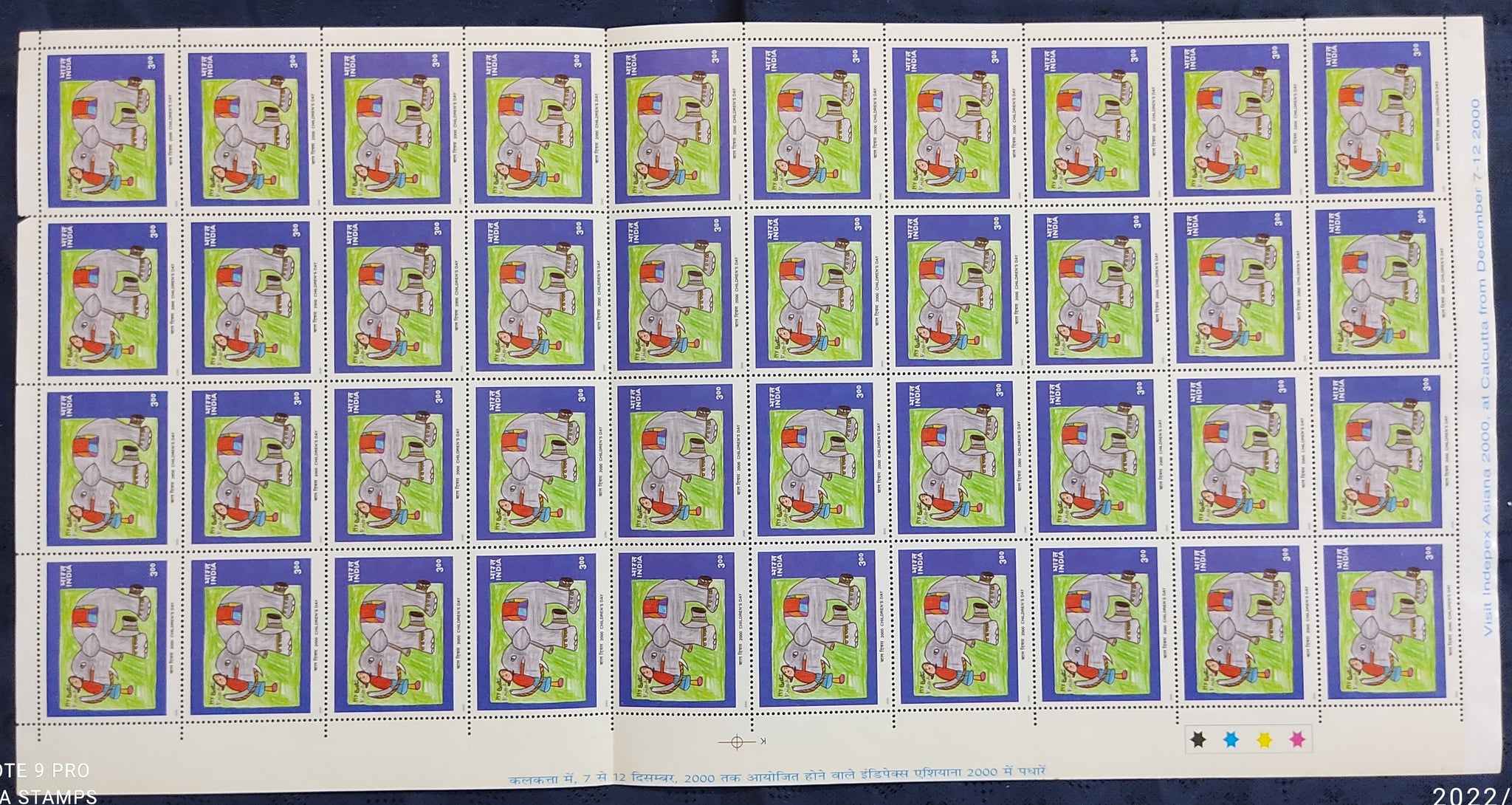 Inde 2000 Peinture de la Journée des enfants éléphants Phila 1795 Feuille complète de 40 timbres MNH # 161