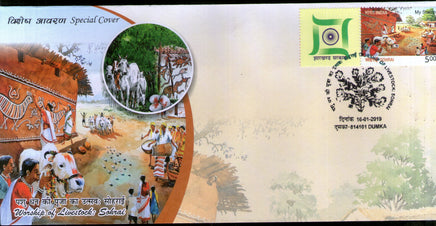 Inde 2019 Culte du bétail Festival Sohrai Mon timbre Premier Jour Spécial Enveloppe n° 18630