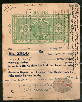 Inde Fiscal Mysore État 2Rs.4As Hundi Papier T65 KM664 Revenu n° 15174