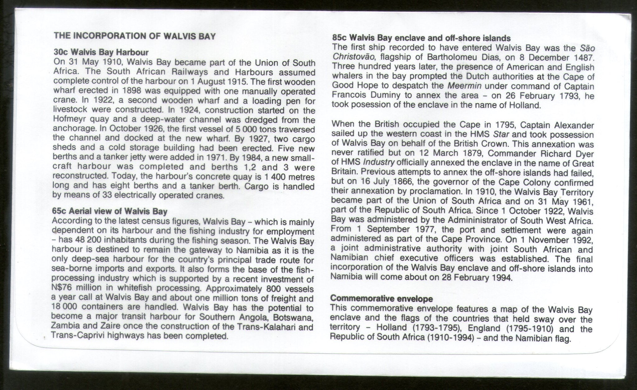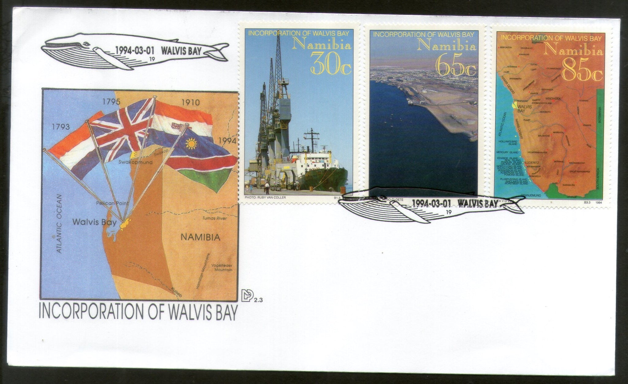 Namibie 1994 Incorporation des drapeaux de Walvis Bay Carte Poisson FDC # FDC27