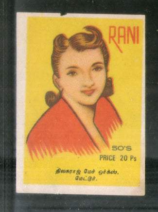 Étiquette de boîte d'allumettes de sécurité India RANI Queen n° MBL269