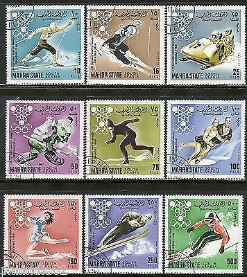 Arabie du Sud - État de Mahara Jeux olympiques d'hiver de 1968 Ski 9v Annulé # 12914a