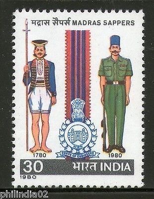 Costumes militaires des sapeurs de Madras, Inde, 1980, Phila-810, MNH