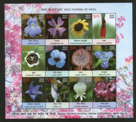 Feuillet de fleurs sauvages de l'Inde 2013, arbres, plantes et flore, MNH
