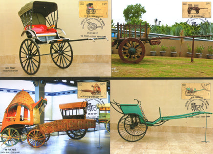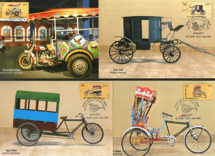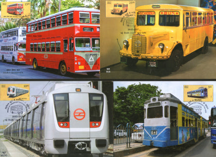 Inde 2017 Moyens de transport à travers les âges Voiture ancienne Métro Train Bus Ensemble de 20 cartes Max avec timbre oblitéré # 9141