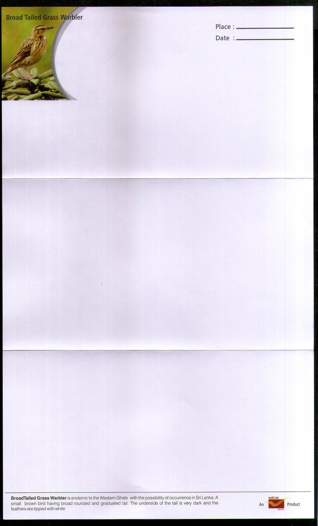 Inde 2018 Oiseau Fauvette à queue large Faune Enveloppe + Feuille de lettres n° 16638