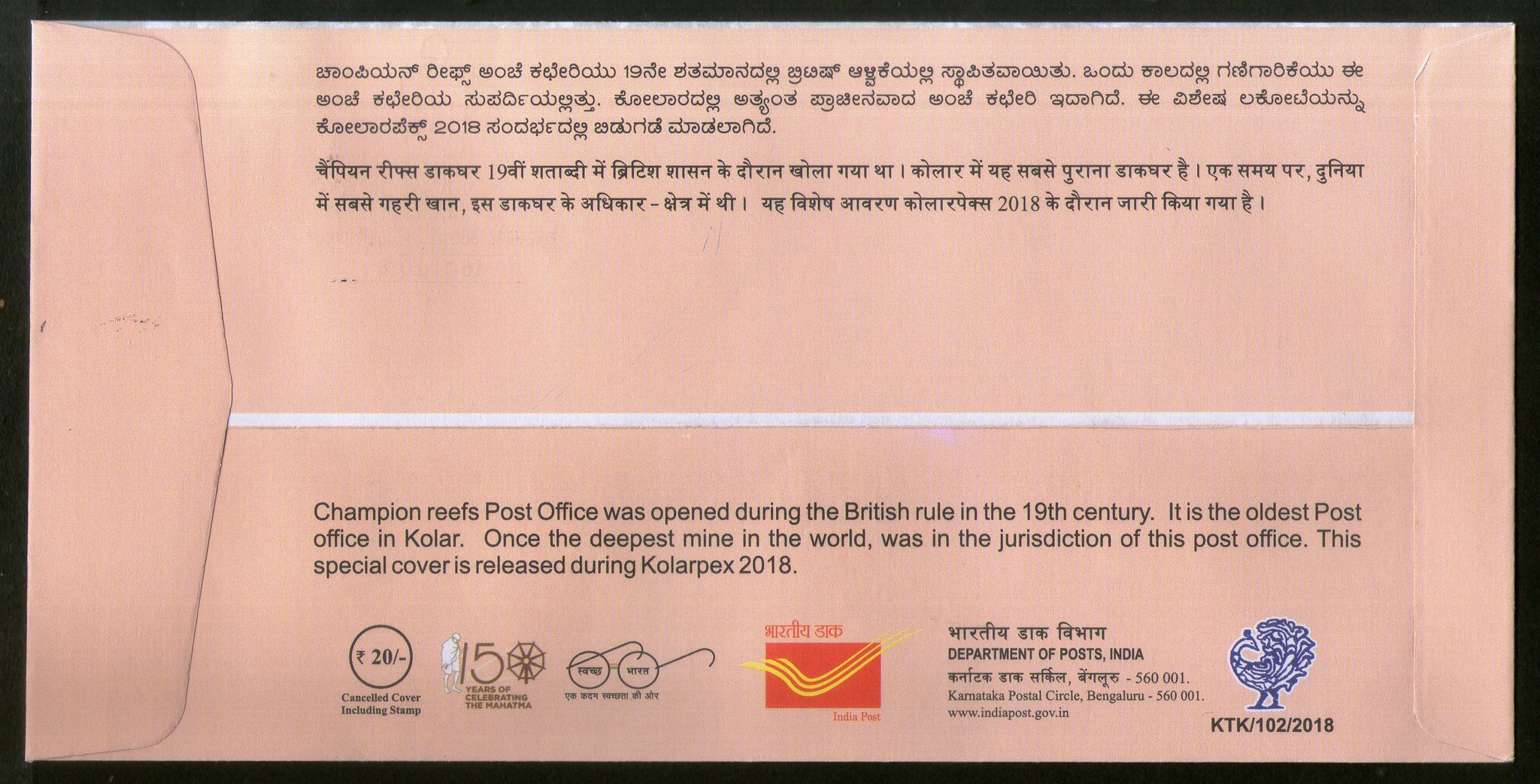 Couverture spéciale Kolarpex n° 18591 pour l'architecture du bureau de poste des champions de l'Inde 2018