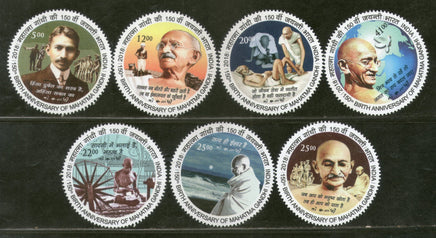 Timbre rond de forme étrange, 7v, neuf sans charnière, pour le 150e anniversaire de la naissance du Mahatma Gandhi, Inde, 2018