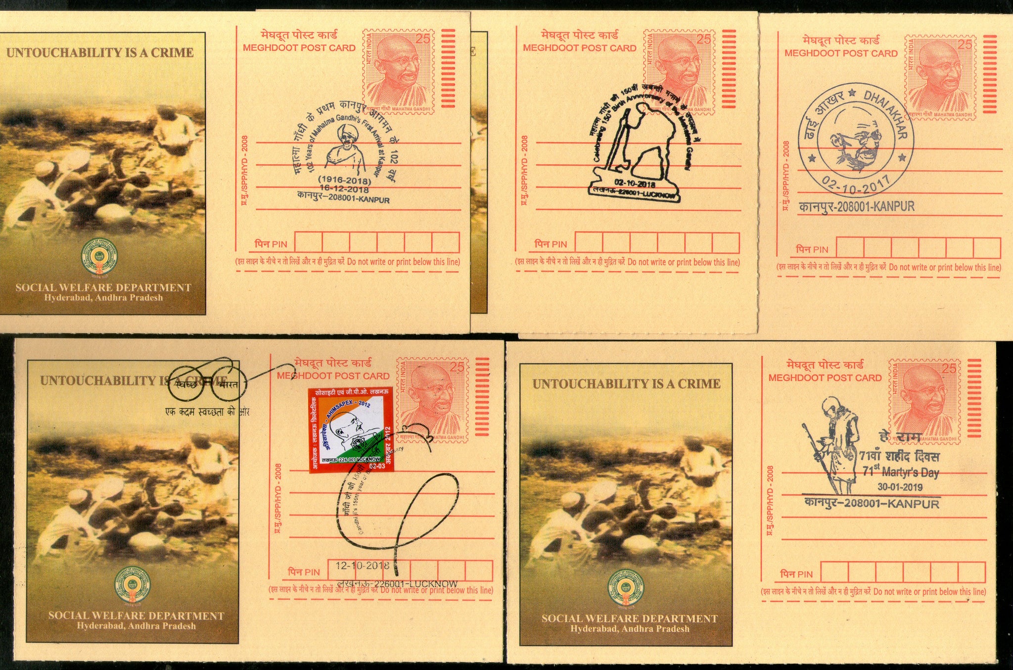 Inde 2018 Mahatma Gandhi Oblitération spéciale 5 cartes postales Megdhoot différentes n° 16063