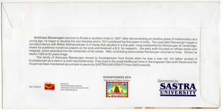 Inde 2018 Mathématicien Srinivasa Ramanujan Couverture spéciale n° 7143