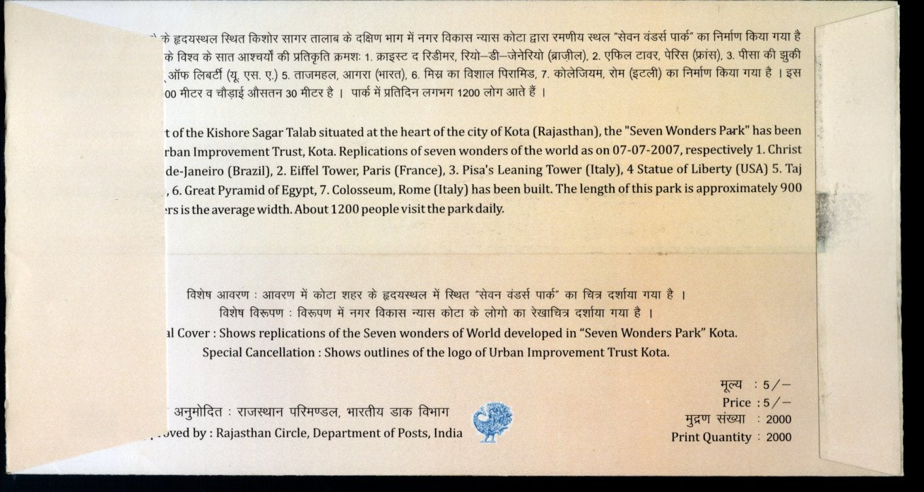 Inde 2019 Seven Wonders Park Kota Kotapex Couverture spéciale n° 7158