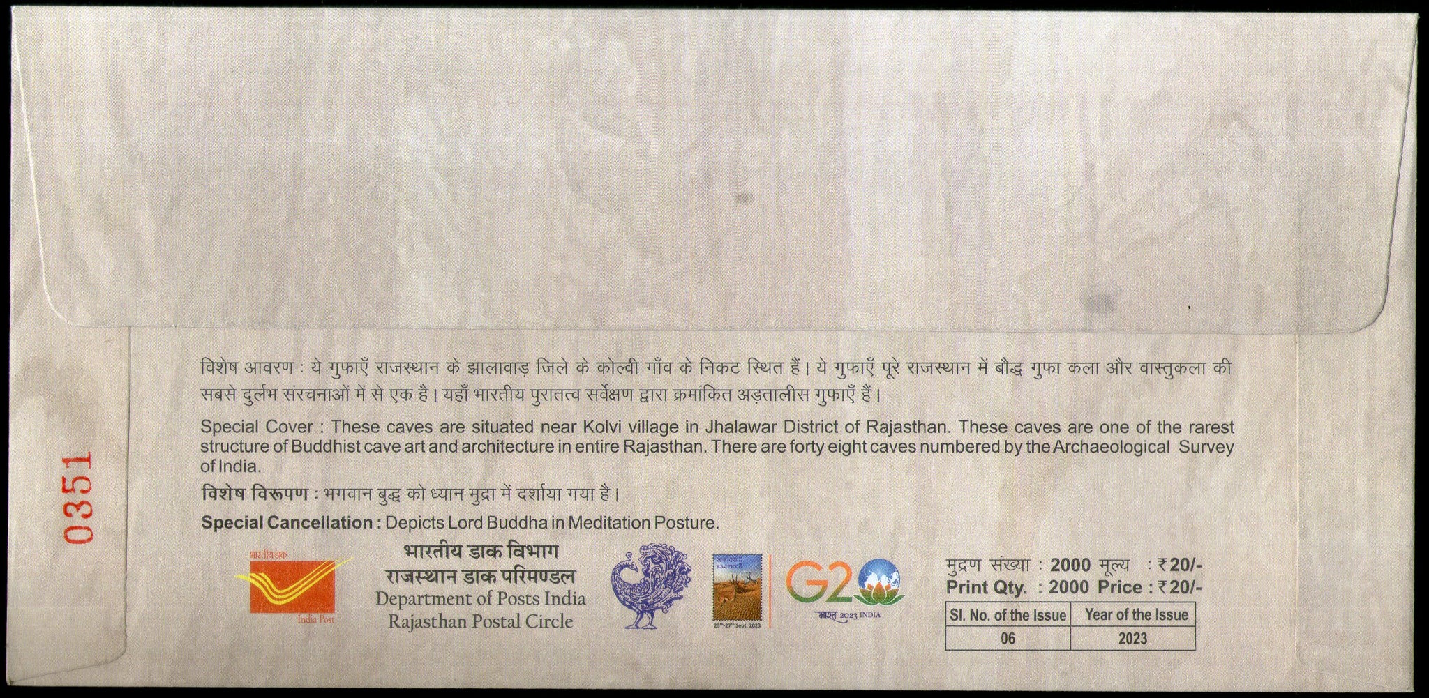 Inde 2023 Grottes bouddhistes de Kolvi Bouddhisme Rajpex Couverture spéciale n° 18255