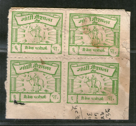 Inde 6ps Gandhi Gaushala Tonk Charity Label BLK/4 Extrêmement RARE # 3710