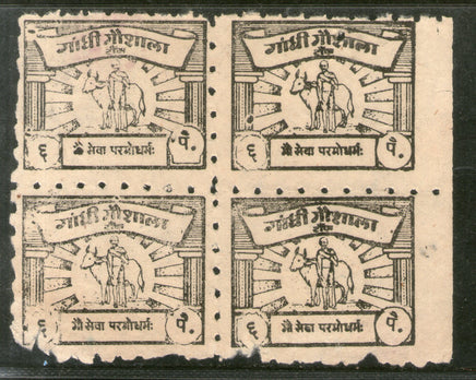 Inde 6ps Gandhi Gaushala Tonk Charity Label BLK/4 Extrêmement RARE # 700