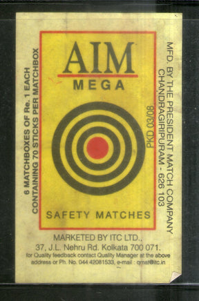 Étiquette de boîte d'allumettes de marque India AIM n° MBL30