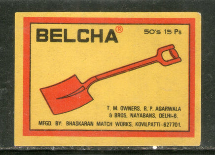 Étiquette de boîte d'allumettes de sécurité India BELCHA n° MBL288