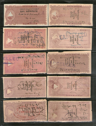 Timbre fiscal indien de l'État de Kathiawar, 10 frais de justice différents, utilisé n° 1323