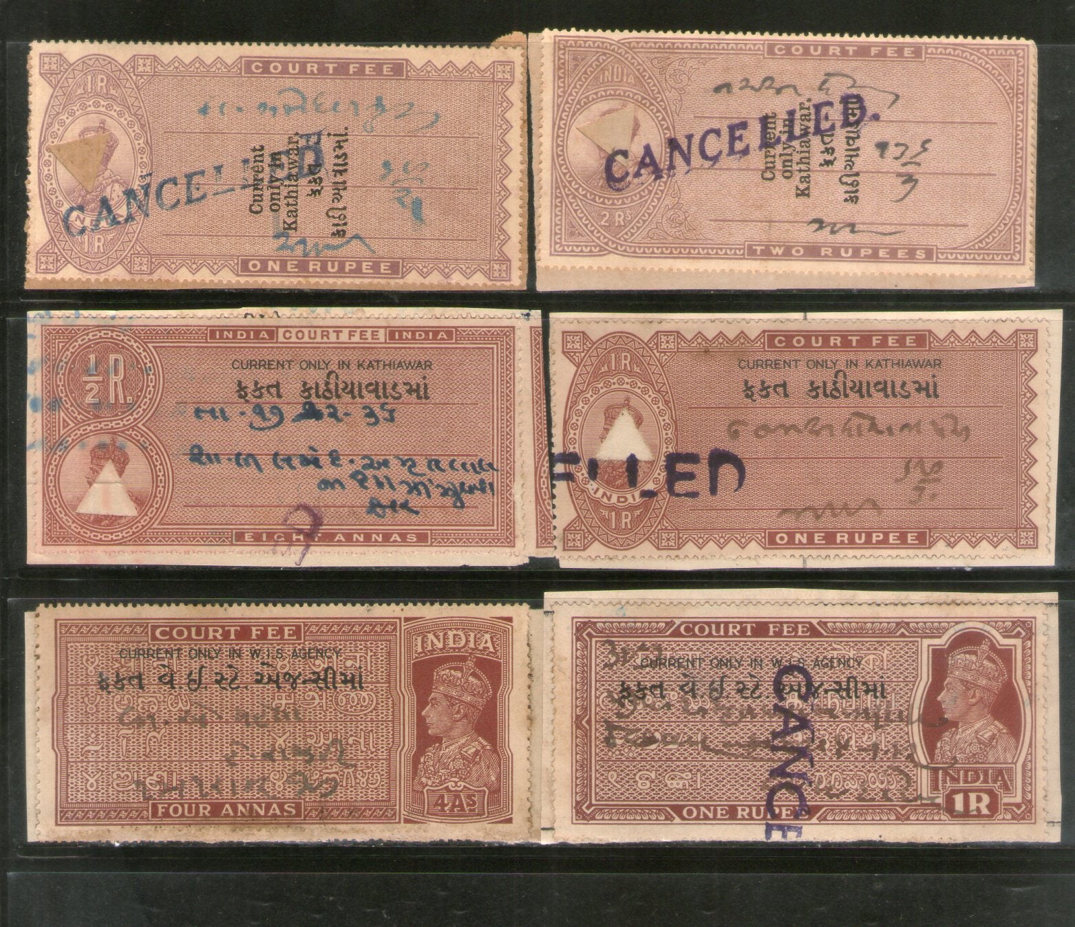 Timbre fiscal indien de l'État de Kathiawar 18 Diff. QV vers KGVI, utilisé n° 565