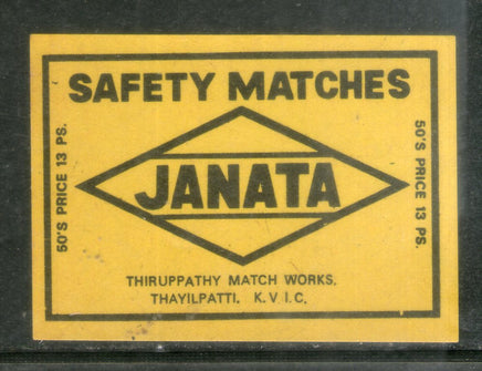 Étiquette de boîte d'allumettes de sécurité JANATA India n° MBL257