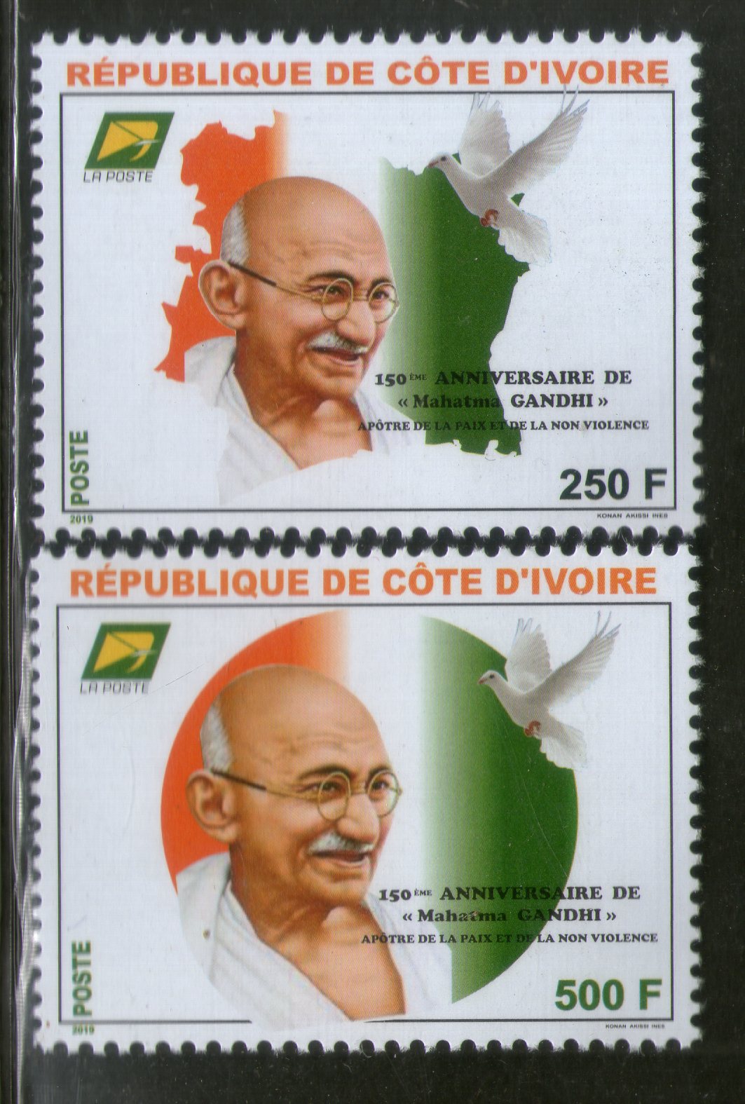 Côte d'Ivoire 2019 Mahatma Gandhi de l'Inde 150e anniversaire Drapeau Colombe 2v MNH # 5362