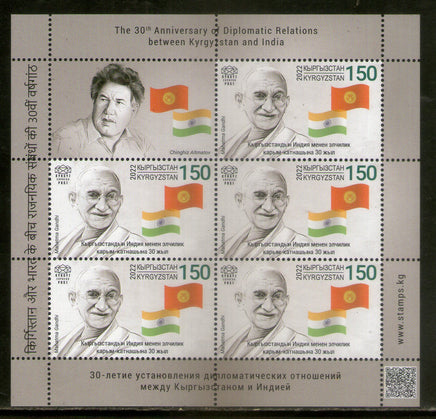 Feuillet de drapeaux du Kirghizistan 2023 Mahatma Gandhi avec l'Inde, MNH n° 1177