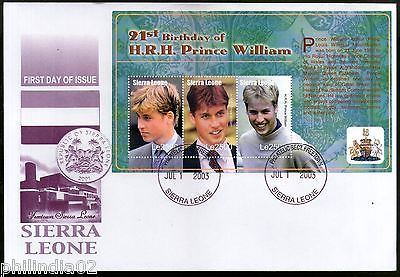 Sierra Leone 2003 Prince William 21e anniversaire Sc 2636 Feuillet sur FDC # 9375