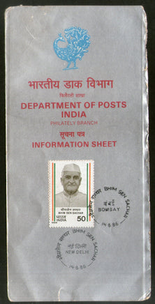 India 1986 Bhim Sen Sachar Phila-1040 Cancelled Folder
