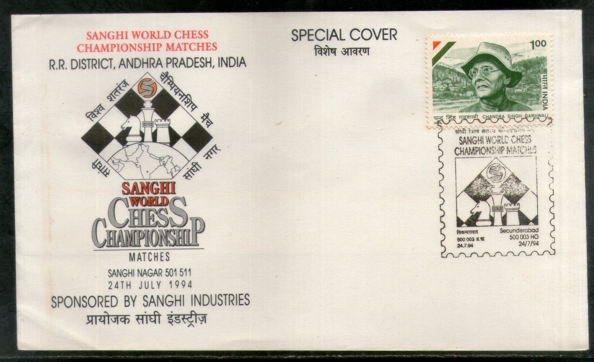 India 1994 Sanghi World Chess Championship Matches Games Special Cover # 16012