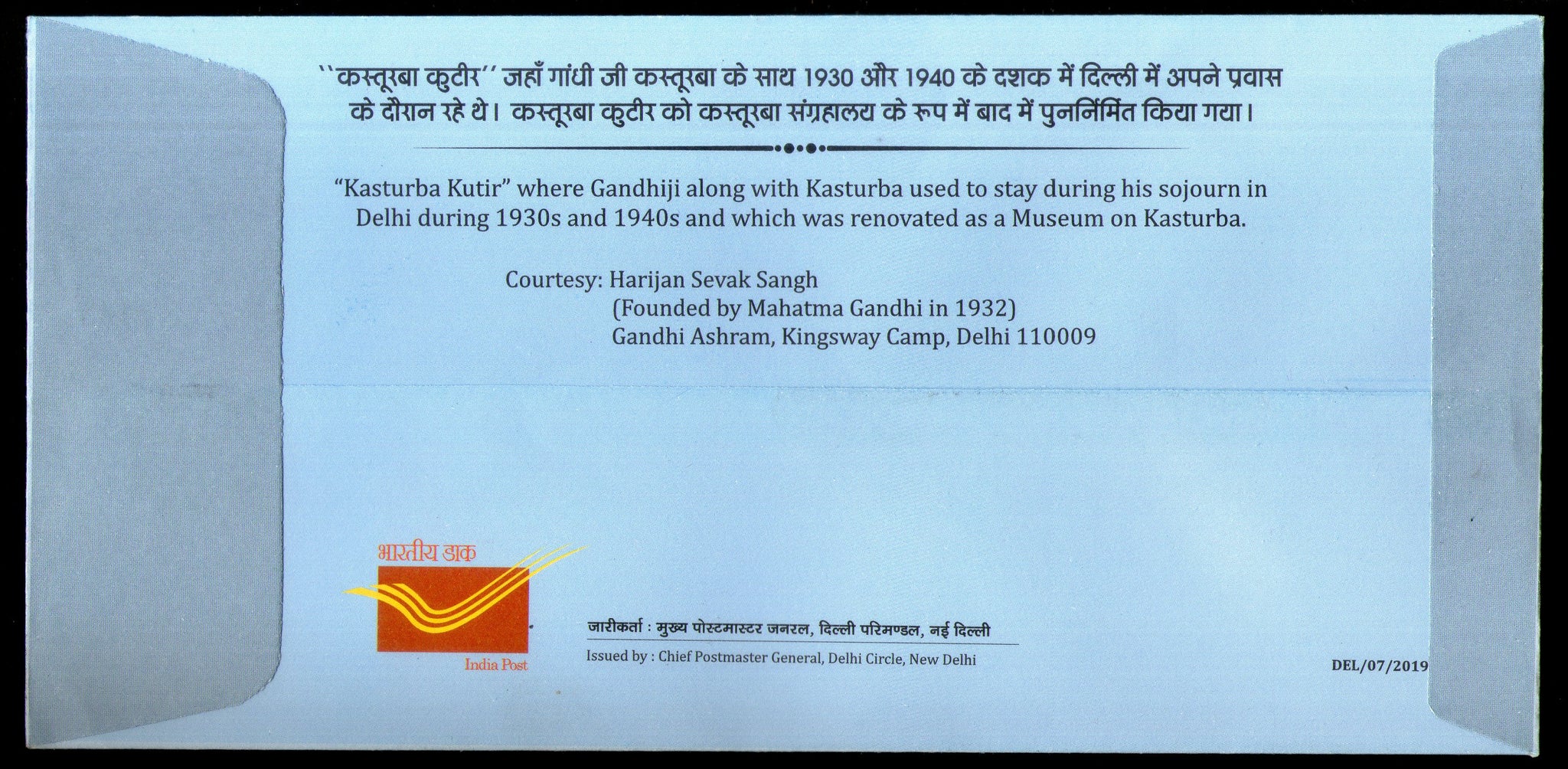 India 2019 Kasturba Memorial Museum Mahatma Gandhi Special Cover # 18708