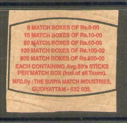 India SURYA Brand Safety Match Box Label # MBL362