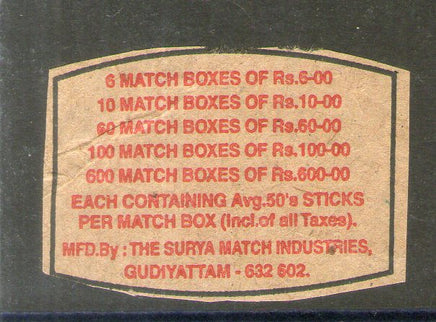 India SURYA Brand Safety Match Box Label # MBL363