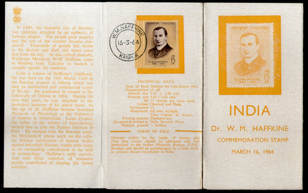 India 1964 Dr. W.M. Haffkine Medicine Health Phila-402 Cancelled Folder