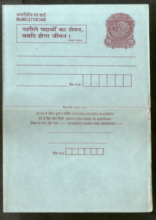 India 1993 75p Peacock Inland Letter Card with Anti Drugs Slogan Advertisement ILC MINT # 332FL