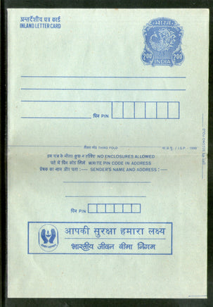 India 1999 200p Peacock Inland Letter Card with LIC Advertisement ILC MINT # 521FL