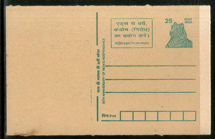 India 1999 25p Tiger AIDS Advertisement Postal Stationery Post Card # PCA449