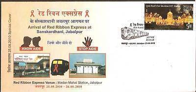 India 2010 Stop Aids Red Ribbon Express Railway Health Special Cover # 6544